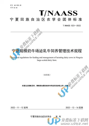 T/NAASS 023-2022 宁夏规模奶牛场泌乳牛饲养管理技术规程