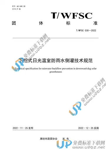 - 标准名称:下挖式日光温室防雨水倒灌技术规范