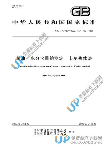 GB/T 42022-2022 精油 水分含量的测定 卡尔费休法
