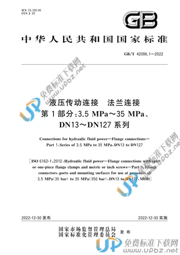GB/T 42086.1-2022 液压传动连接 法兰连接 第1部分:3.5 MPa~35 MPa、DN13~DN127系列