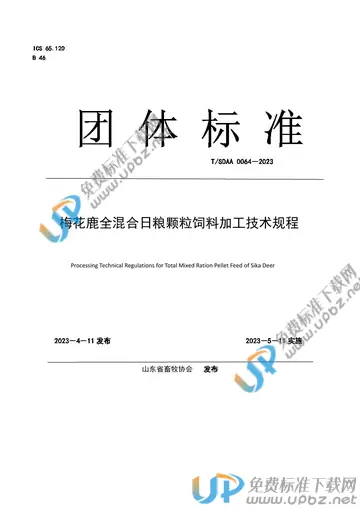- 标准名称:梅花鹿全混合日粮颗粒饲料加工技术规程