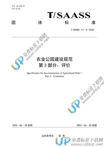 T/SAASS 111.3-2023 农业公园建设规范 第3部分:评价
