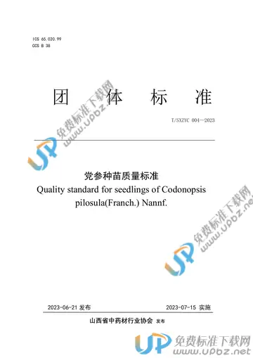 - 标准名称:党参种苗质量标准