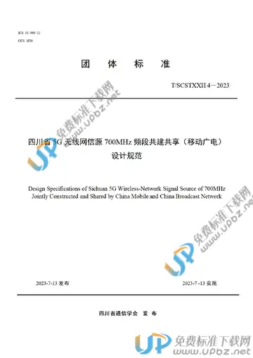 T/SCSTXXH 4-2023 四川省5G无线网信源700MHz频段共建共享(移动广电)设计规范