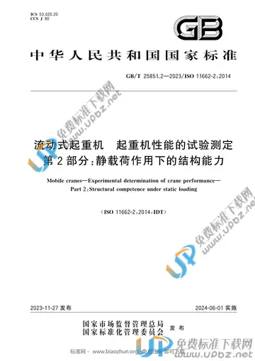 GB/T 25851.2-2023 流动式起重机 起重机性能的试验测定 第2部分:静载荷作用下的结构能力
