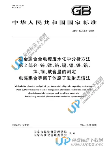- 标准名称:贵金属合金电镀废水化学分析方法 第2部分:锌、锰、铬、镉、铅、铁、铝、镍、铜、铍含量的测定 电感耦合等离子体原子发射光谱法