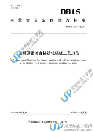 地方标准《电解原铝液直接铸轧铝板工艺规范》,主管部门为内蒙古自治区市场监督管理局。本文件规定了电解原铝液直接铸轧(即连续铸轧)生产铝板的设备要求、主要原辅材料、工艺流程、生产工艺要求。本文件适用于电解原铝液(原材料中占比不少于50%)连续铸轧法生产铝板。