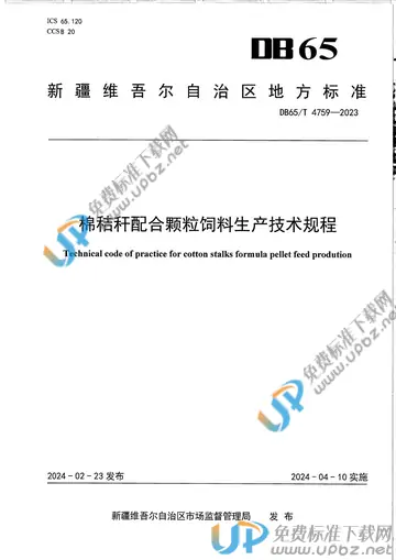 DB65/T 4759-2023 棉秸秆配合颗粒饲料生产技术规程