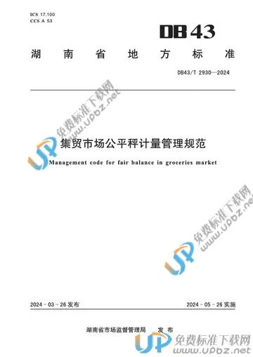 地方标准《集贸市场公平秤计量管理规范》,主管部门为湖南省市场监督管理局。本文件规定了集贸市场公平秤的选型要求、管理要求。本文件适用于集贸市场公平秤的计量管理。