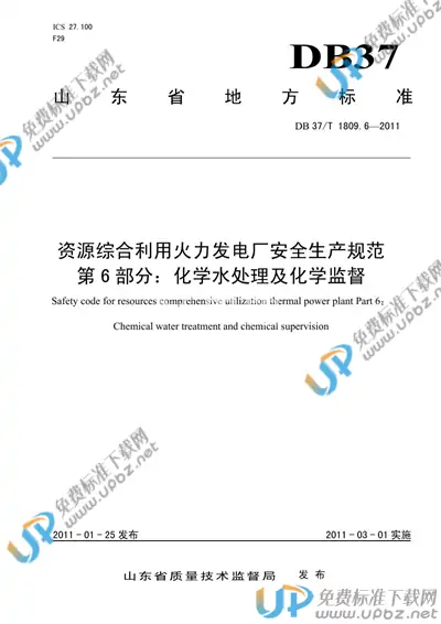 地方标准《资源综合利用火力发电厂安全生产规范 第6部分:化学水处理及化学监督》,主管部门为山东省质量技术监督局。
