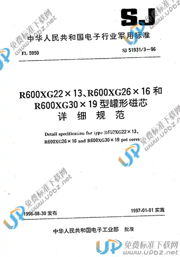 SJ 51931/3-1996 r600xg22×13、r600xg26×16和r600xg30×19型罐形磁芯详细规范