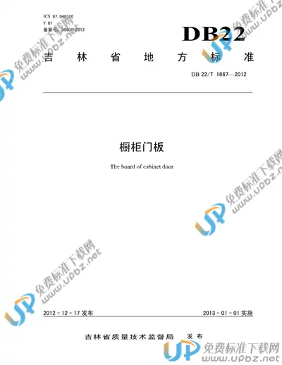 地方标准《橱柜门板》,主管部门为吉林省质量技术监督局。