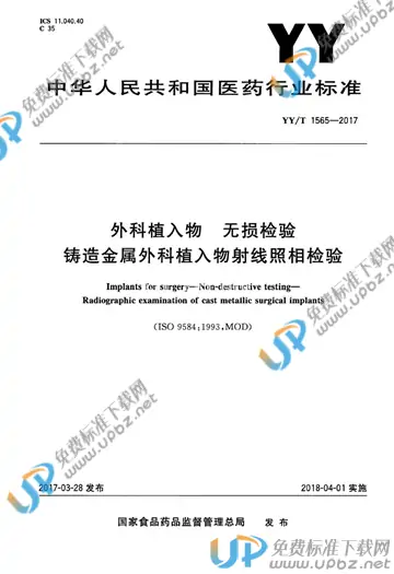 YY/T 1565-2017 外科植入物无损检验铸造金属外科植入物射线照相检验