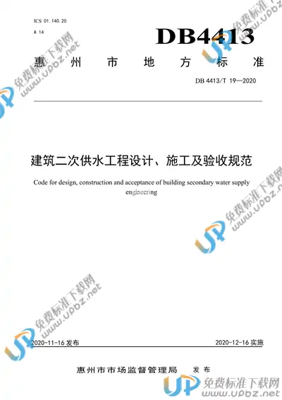DB4413/T 19-2020 建筑二次供水工程设计、施工及验收规范
