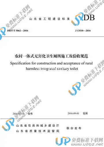 地方标准《农村一体式无害化卫生厕所施工及验收规范》由山东省住房和城乡建设厅归口上报,主管部门为山东省市场监督管理局。本规范适用于山东省聚乙烯、共聚聚丙烯、玻璃纤维增强复合材料、 聚氯乙烯等材质的一体式化粪池配套的无害化卫生厕所施工及验收。