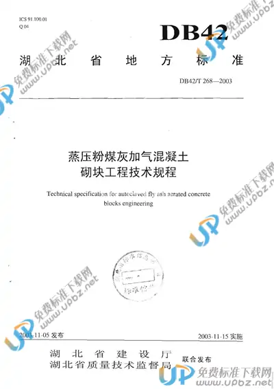 DB42/T 268-2003 蒸压粉煤灰加气混凝土砌块工程技术规程