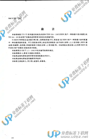 YD/T 928-1997(2017) N-ISDN第二类网络终端(NT2型)设备 ISDN用户交换机技术规范