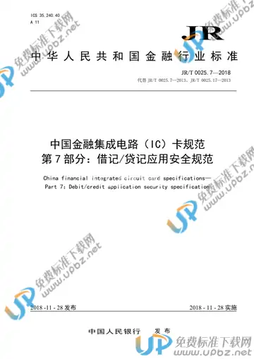 JR/T 0025.7-2018 中国金融集成电路(IC)卡规范 第7部分:借记/贷记应用安全规范