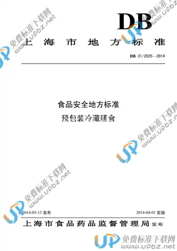 DB 31/ 2025-2014 食品安全地方标准 预包装冷藏膳食