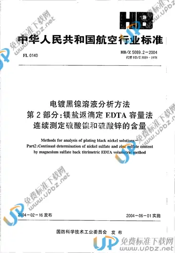 HB/Z 5089.2-2004(2010) 电镀黑镍溶液分析方法 第2部分:镁盐返滴定EDTA容量法连续测定硫酸镍和硫酸锌的含量