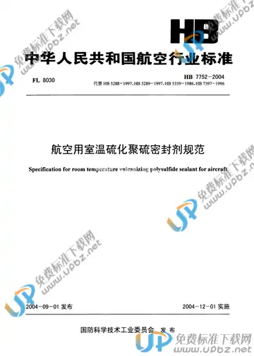 HB 7752-2004(2010) 航空用室温硫化聚硫密封剂规范