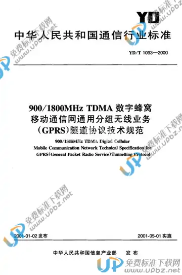 YD/T 1093-2000(2011) 900/1800MHz TDMA数字蜂窝移动通信网通用分组无线业务(GPRS)隧道协议技术规范