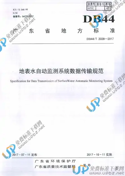 地方标准《地表水自动监测系统数据传输规范》由广东省环境保护厅归口上报,主管部门为广东省质量技术监督局。本标准适用于广东省地表水自动监测站和数据监控平台之间的数据交换传输。 本标准规定了地表水自动监测系统的系统结构、数据传输过程和系统的数据格式及代码定义,本标准不限制系统扩展其他的信息内容,在扩展内容时不得与本标准中所使用或保留的控制命令相冲突。