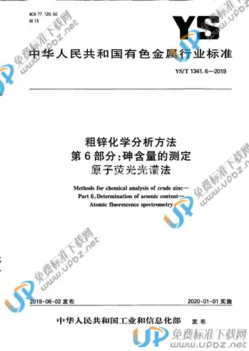 YS/T 1341.6-2019 粗锌化学分析方法 第6部分:砷含量的测定 原子荧光光谱法