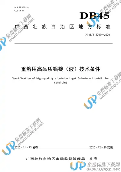 DB45/T 2207-2020 重熔用高品质铝锭(液)技术条件