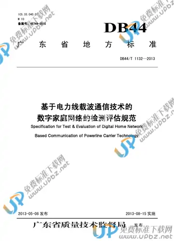 DB44/T 1132-2013 基于电力线载波通信技术的 数字家庭网络的检测评估规范