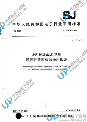 SJ 20916-2004 uhf频段战术卫星通信轻型车载站通用规范