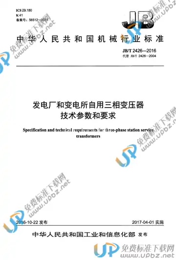 JB/T 2426-2016 发电厂和变电所自用三相变压器技术参数和要求