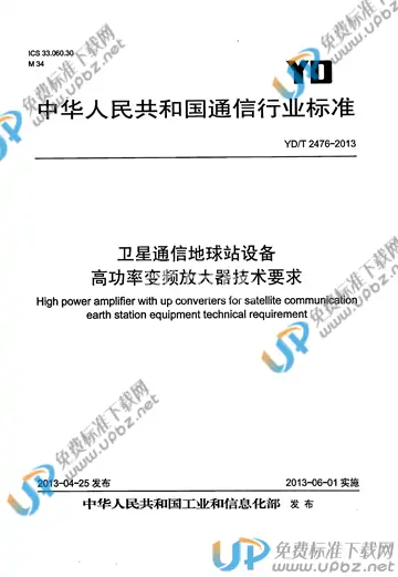 - 标准名称:卫星通信地球站设备 高功率变频放大器技术要求