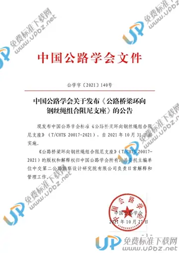 T/CHTS 20017-2021 公路桥梁环向钢丝绳组合阻尼支座
