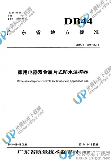 地方标准《家用电器双金属片式防水温控器》由广东省质量技术监督局归口上报,主管部门为广东省质量技术监督局。本标准规定了家用电器双金属片式防水温控器(以下简称:防水温控器)的术语和定义、要求、试验方法、检验规则、标志、包装、运输和贮存。 本标准仅适用于额定电压不超过AC 250 V/50 Hz-60 Hz或DC 36V、额定电流不超过16A的电阻性负载电路的家用电器双金属片式防水温控器。