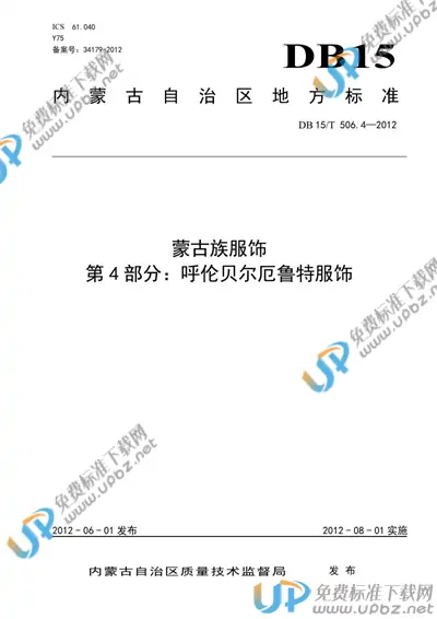 DB15/T 506.4-2012 蒙古族服饰 第4部分: 呼伦贝尔厄鲁特服饰
