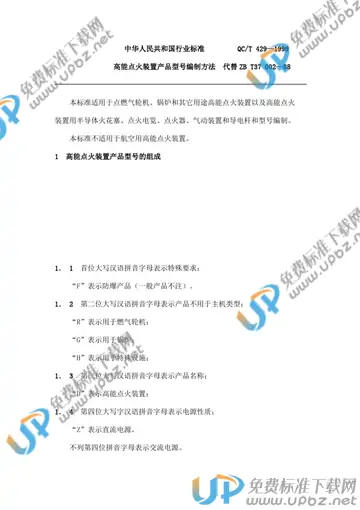 QC/T 429-1999 高能点火装置产品型号编制方法