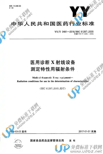 YY/T 0481-2016 医用诊断X射线设备 测定特性用辐射条件