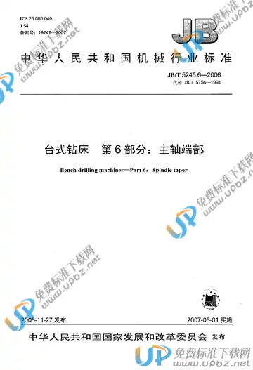 行业标准《台式钻床 第6部分:主轴端部》由全国金属切削机床标准化技术委员会归口上报,主管部门为国家发展和改革委员会。JB/T 5245 通用台式钻床 精度、通用台式钻床、轻型台式钻床主轴端部的型式与尺寸。 本部分适用于台式钻床、通用台式钻床、轻型台式钻床的主轴。
