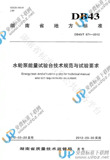 DB43/T 671-2012 水轮泵能量试验台技术规范与试验要求