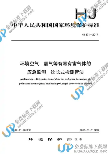 HJ 871-2017 环境空气 氯气等有毒有害气体的应急监测 比长式检测管法