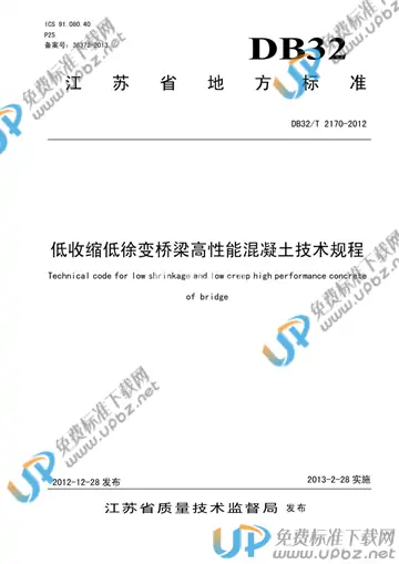 DB32/T 2170-2012 低收缩低徐变桥梁高性能混凝土技术规程