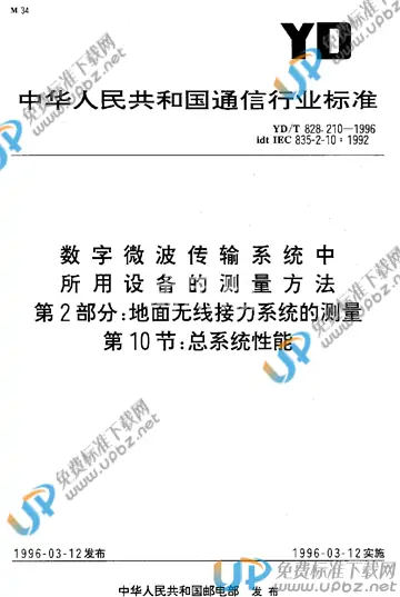 YD/T 828.210-1996 数字微波传输系统中所用设备的测量方法 第2部分:地面无线接力系统的测量 第10节:总系统性能