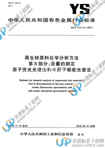 YS/T 1171.8-2017 再生锌原料化学分析方法 第8部分:汞量的测定 原子荧光光谱法和冷原子吸收光谱法