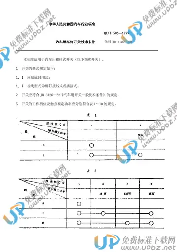 QC/T 505-1999 汽车用车灯开关技术条件