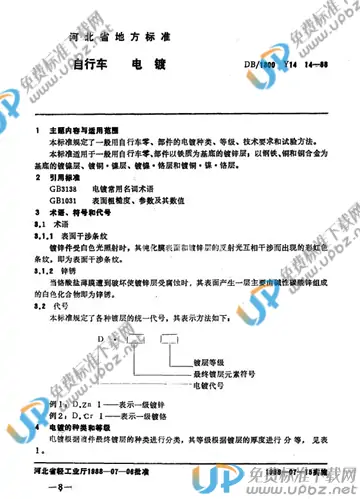 DB/T1300 Y 14 14-1988 自行车 电镀