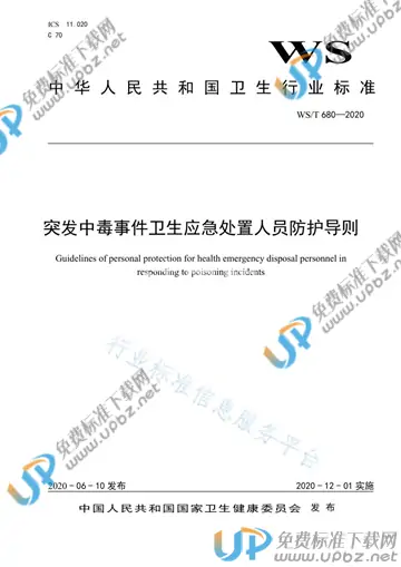 WS/T 680-2020 突发中毒事件卫生应急处置人员防护导则