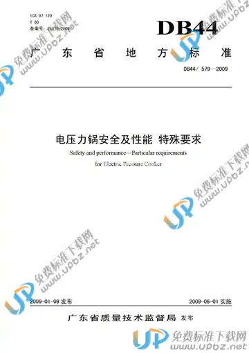 DB44/ 579-2009 电压力锅安全及性能 特殊要求