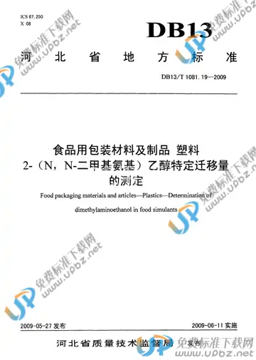 DB 13/T 1081.19-2009 食品用包装材料及制品 塑料 2-(n,n-二甲基氨基)乙醇特定迁移量的测定