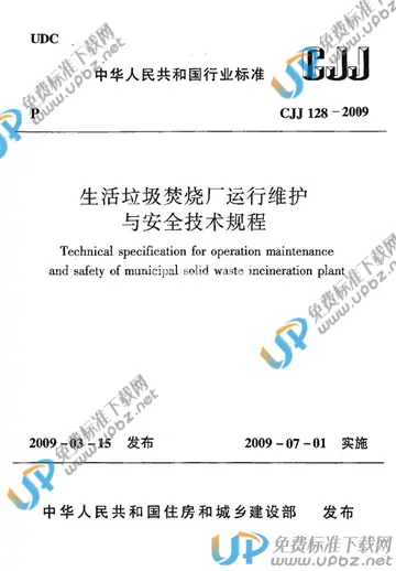 CJJ 128-2009 生活垃圾焚烧厂运行维护与安全技术规程